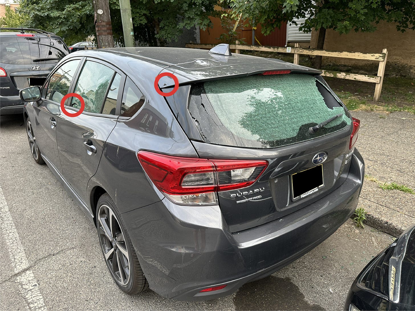 The cops were already gone when I got to my car armed with trash bags & tape. A young mom on the block owned the car behind mine, which also had shattered back glass. She came out when she saw me taping up my windows. She had seen the shooters; they were on bikes and she guessed they were 12 or 13 years old.